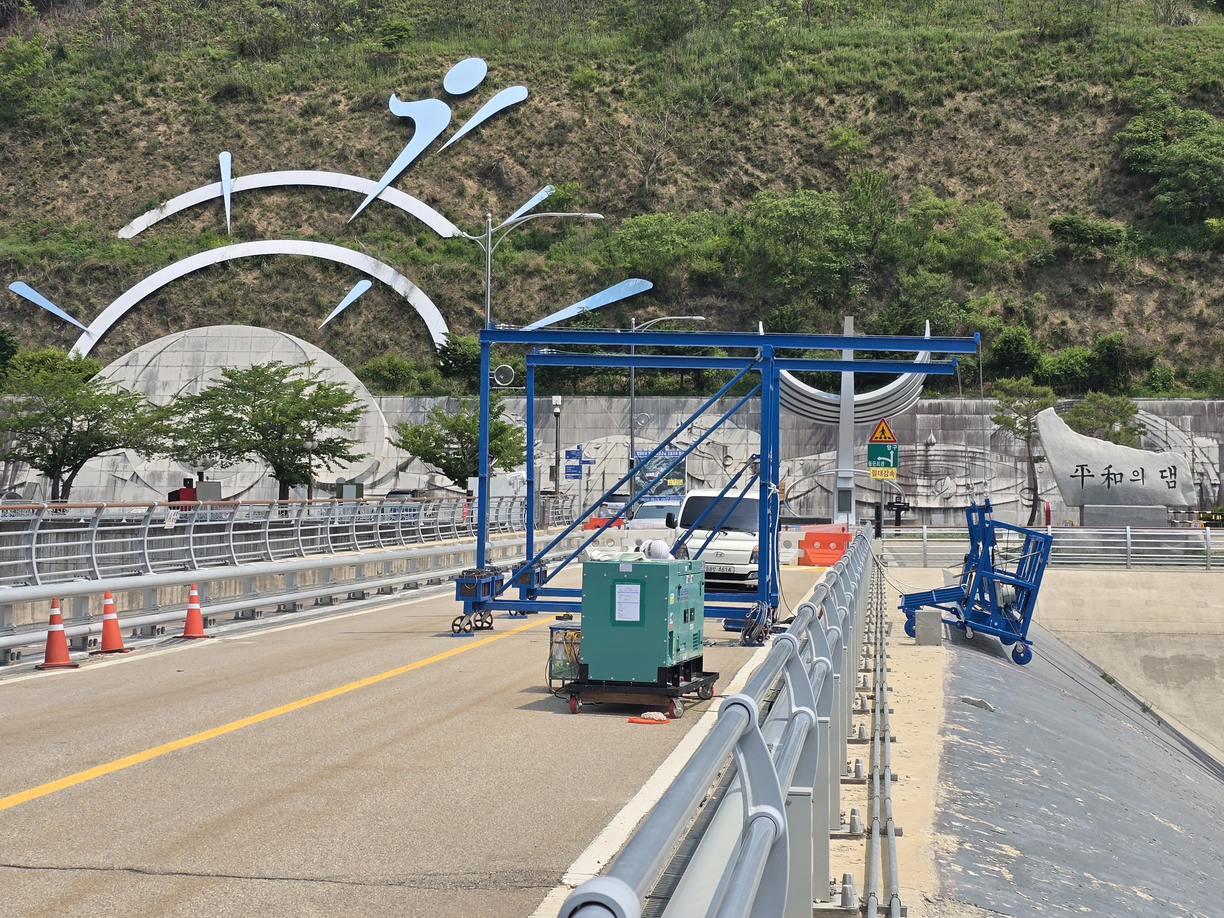 댐의 경사면 보수 작업을 위한 경사용곤돌라 설치