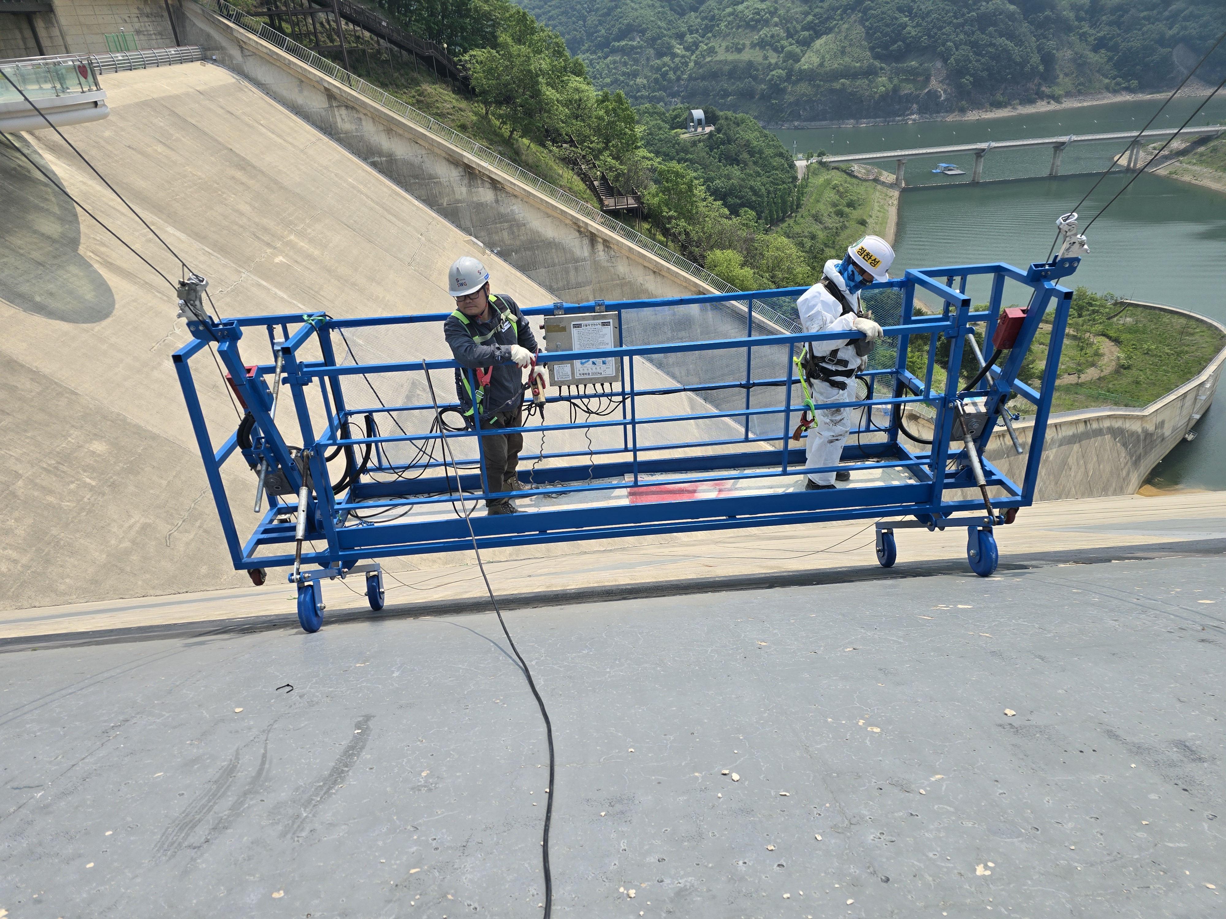 댐의 보수 작업을 위해서 곤돌라 작업대